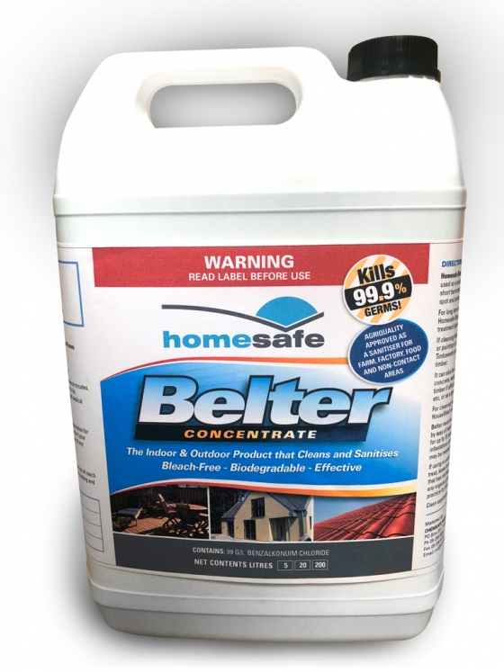 Belter will get rid of Mould, Moss, Algae, Lichen, Black Spot and General Organic Growth on surfaces. The active ingredients will provide a sanitising effect and provide some residual treatment.